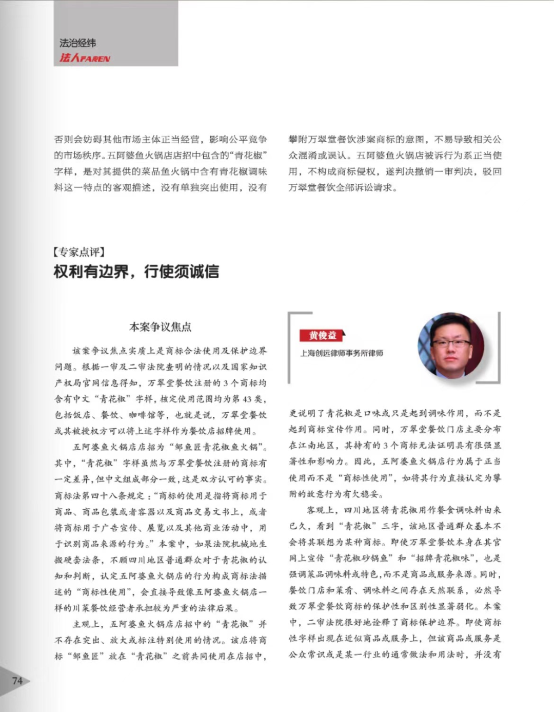安阳辉知简讯 | 辉知队黄俊益律师应“法治日报”旗下杂志邀请,就“青花椒”案发表专家点评